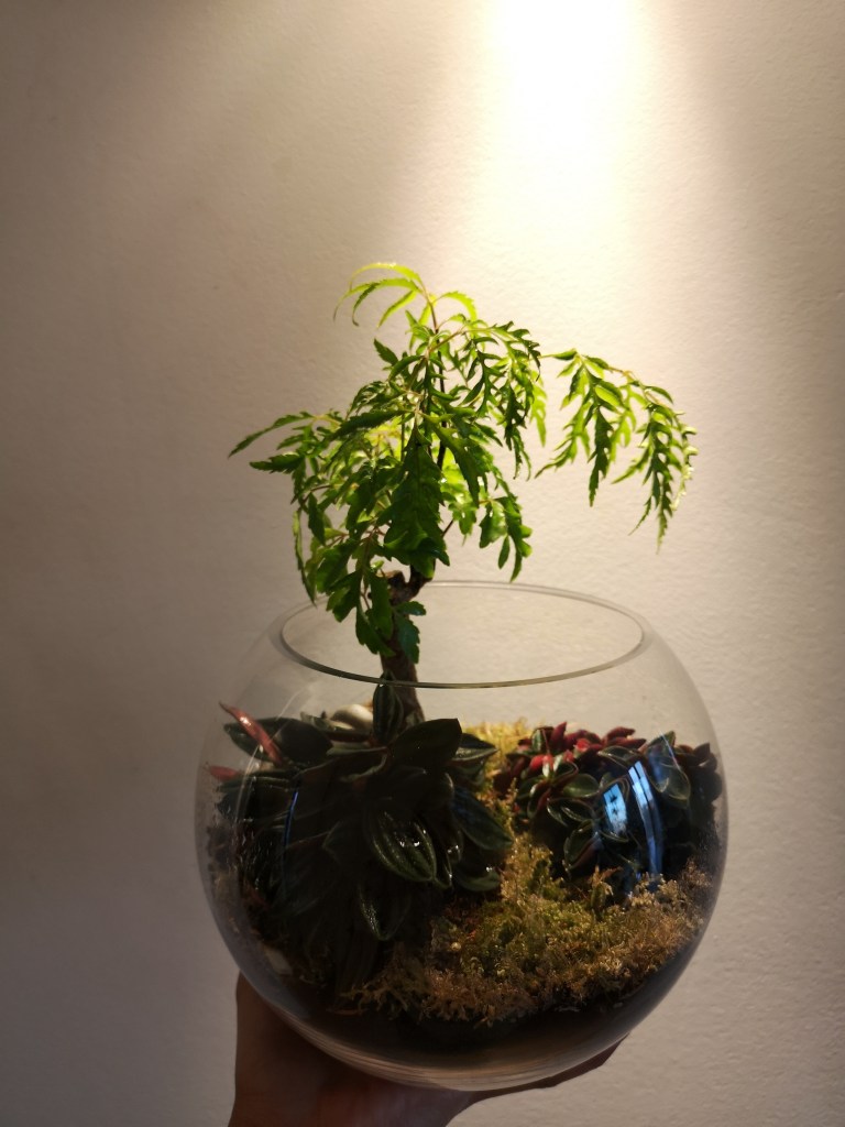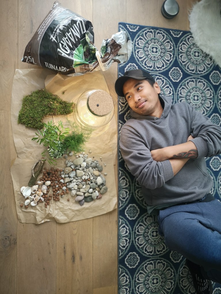 Working in the sustainability industry myself, I have become quite attached to the concept and I wondered if I could create a self-sustaining ecosystem myself. I got the inspiration of building my own terrarium from my dear friend and co-plant parent, Eva, who has successfully built some of the most beautiful ecosystems I’ve seen.
